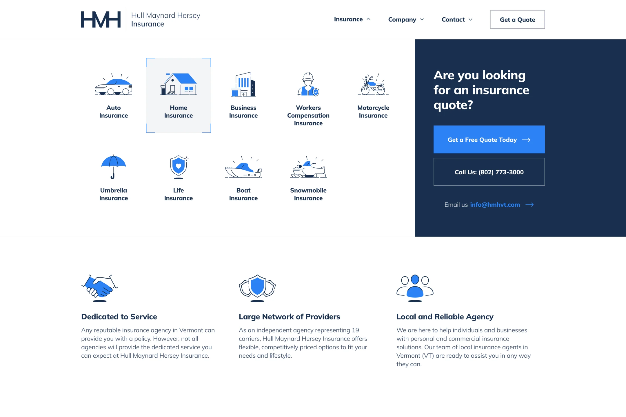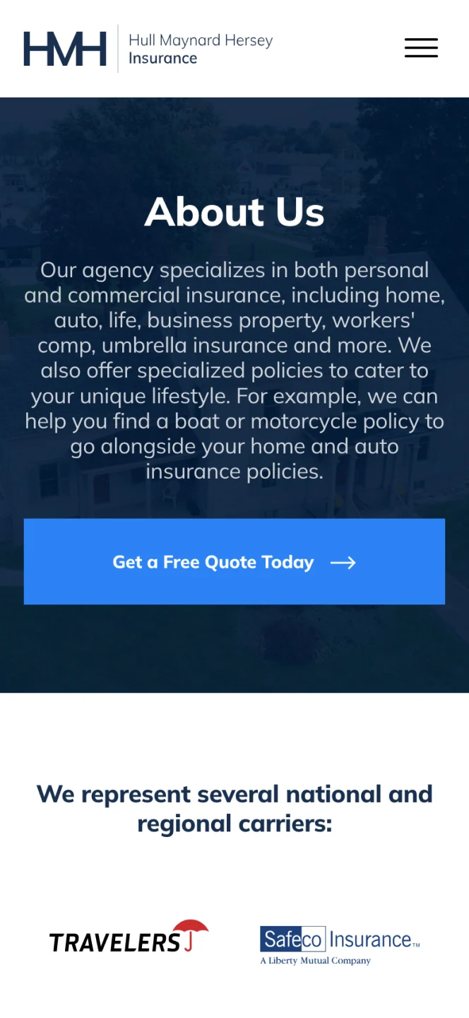 The redesign of the HMH website aimed to clearly articulate the range of insurance services offered and underscore the exceptional customer service of this independent agency. Key goals included: